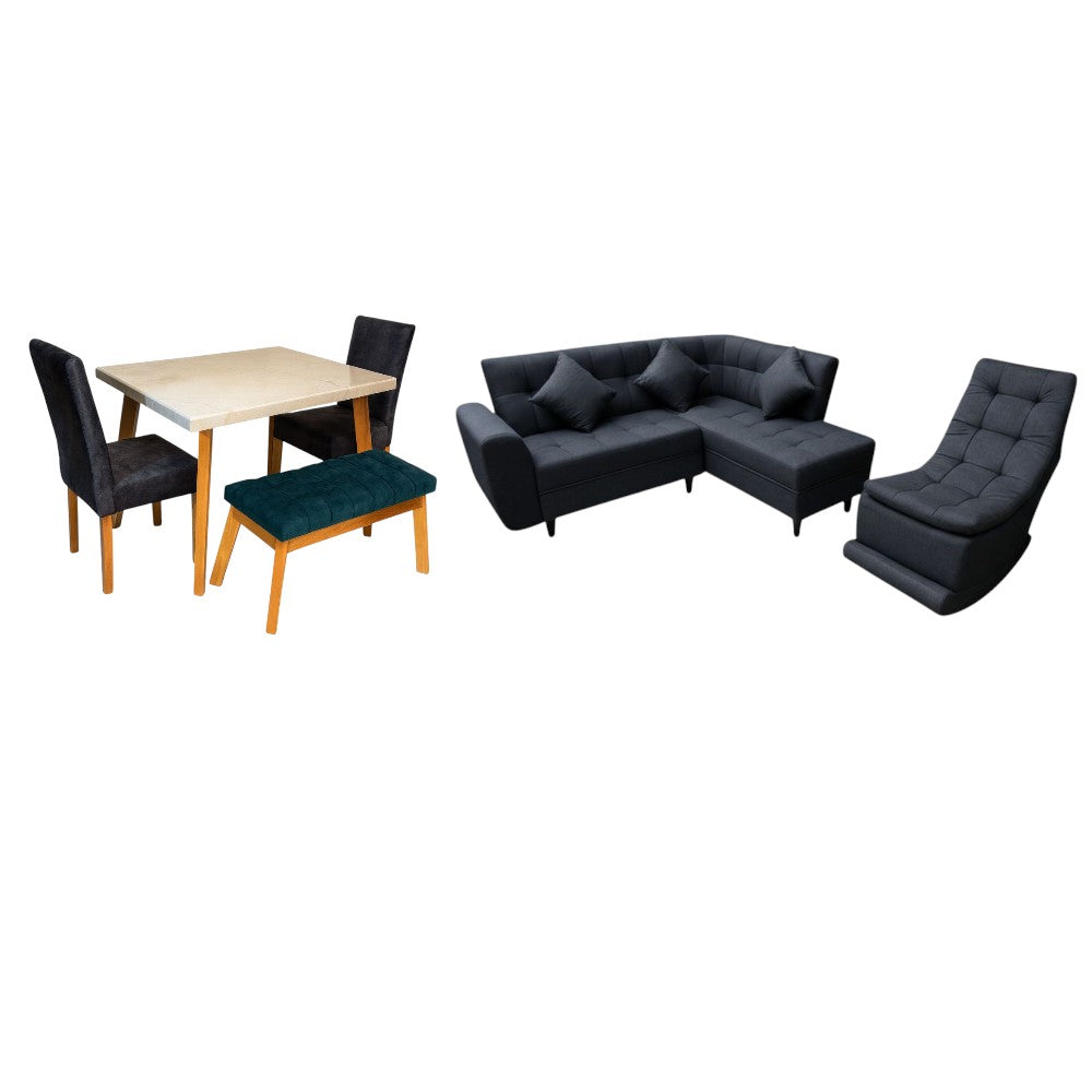 Combo Sala En L + Mecedora + Comedor 4 Puestos Escandinavo Tela Gris Amigable a las Mascotas - Fabrica OnlineCombo Sala En L + Mecedora + Comedor 4 Puestos Escandinavo Tela Gris Amigable a las Mascotas - Fabrica Online