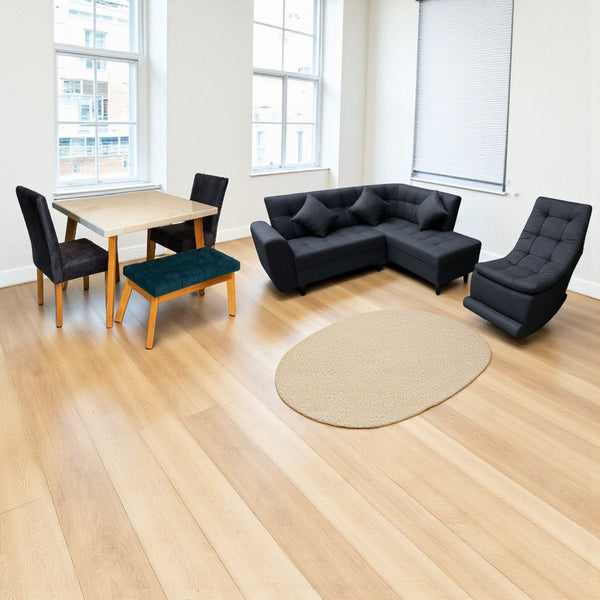 Combo Sala En L + Mecedora + Comedor 4 Puestos Escandinavo Tela Gris Amigable a las Mascotas