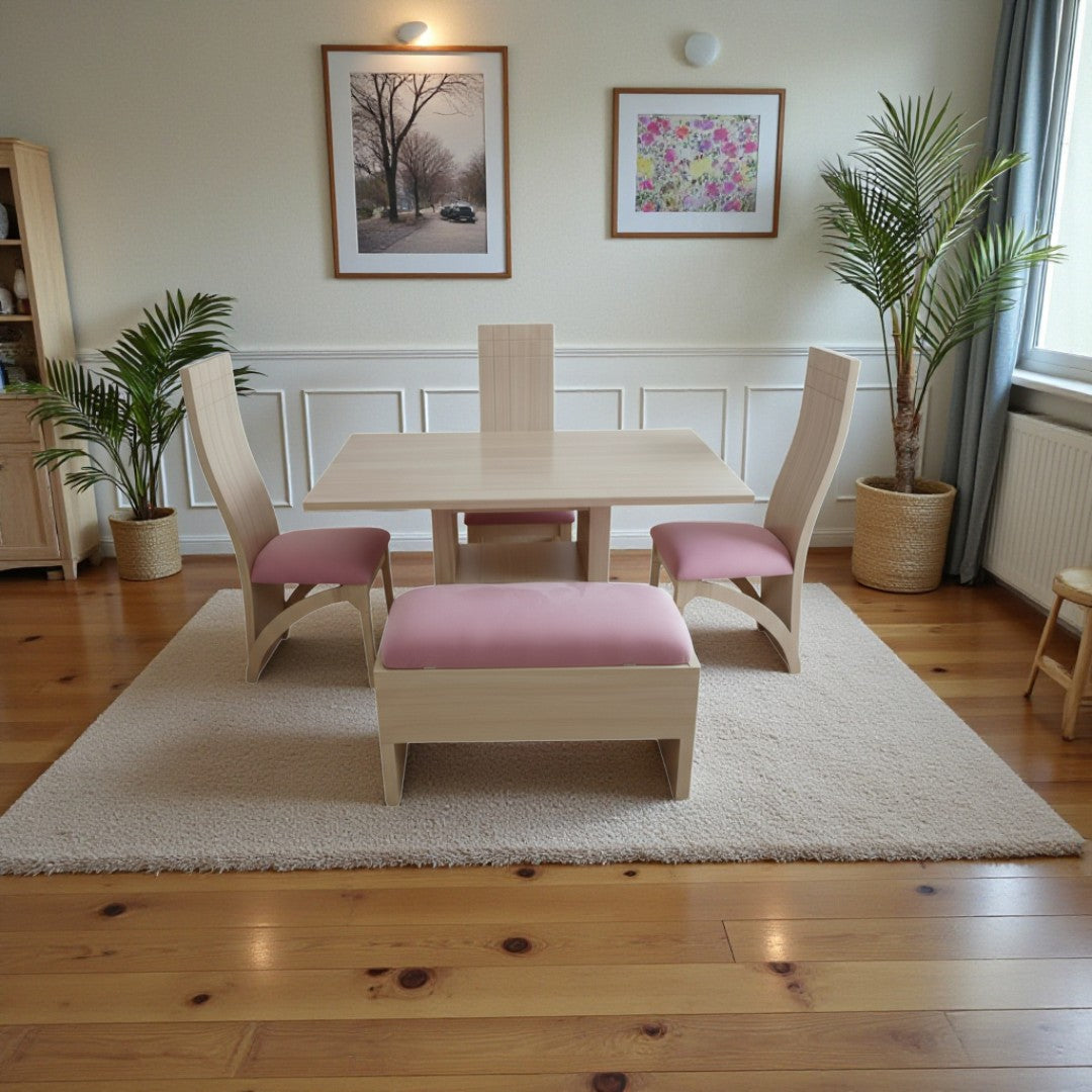 Juego de Comedor Eko 5 Puesto Color Miel Tapizado Rosa